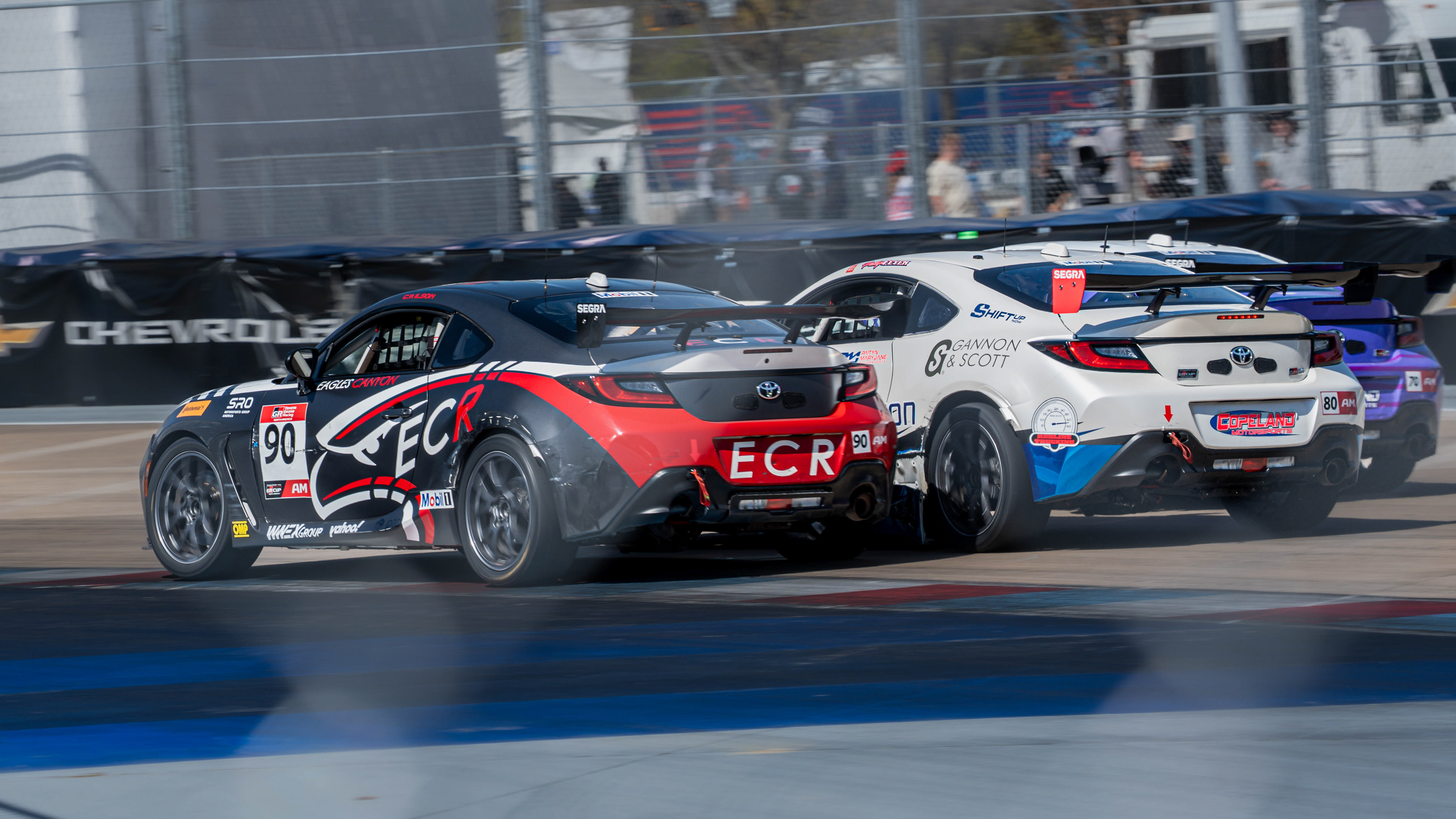 The spec-based Toyota GR86 platform produced tight racing and frequent position battles, highlighting the depth of competition and the importance of precision on the unforgiving Arlington street course.